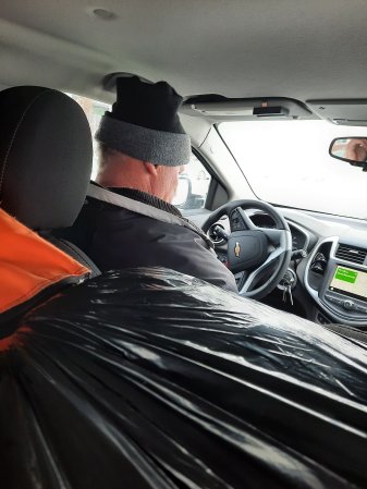 The car is so full. Even Michele is "surrounded" by bags in the back seat.