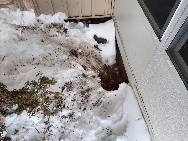 He decided to dig a den under the sunroom. Last year that is where it was. Jan blocked it, but he tried again this winter.