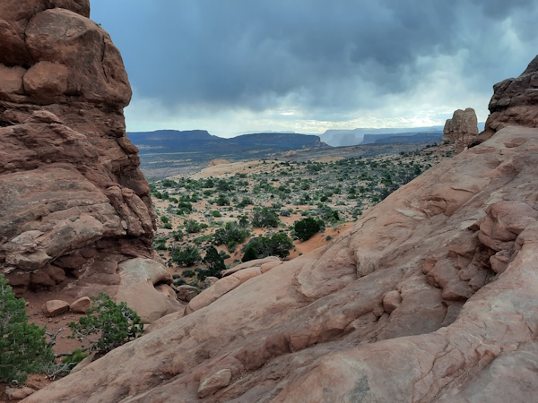 Michele still has a hard time with her foot and knee. The other option is to go to the Delicate Arch viewpoint. An easier hike.