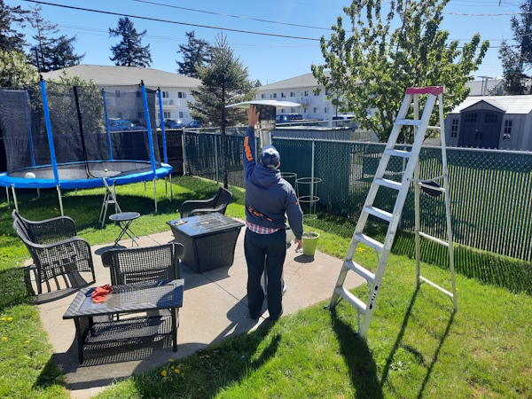 Again, we use 2X4 lumber and left-over pipes to roll the porch back in place.