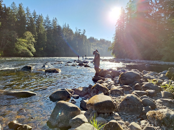 I am fishing with Jeremy on the Campbell River. We are fishing for pink salmon.