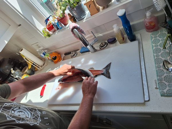 We are having Coho salmon for supper. Audrey is back from visiting her friends near Victoria.