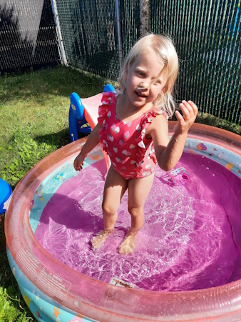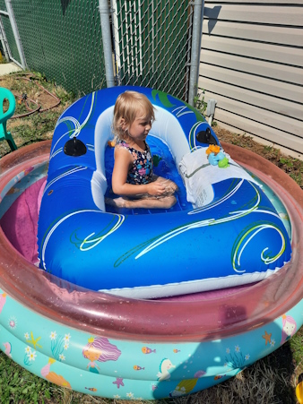 Once home, the fun continues with her pool.
