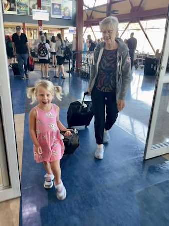 It is warm; time to head to the beach with Grandma.