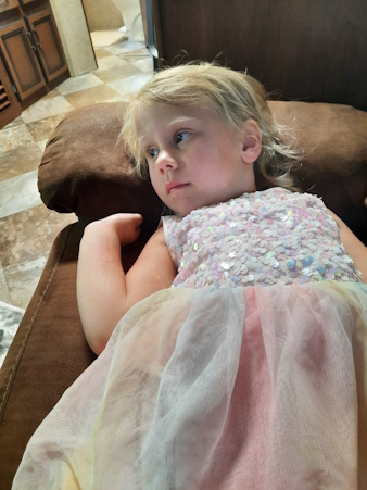 This is one happy but tired little girl.