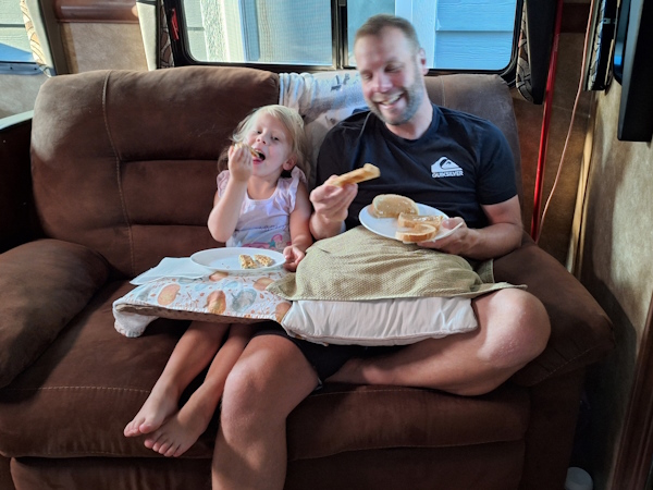 Natasha is back in the trailer tonight. Because it is Saturday, it is a sleepover night with movies and junk food.