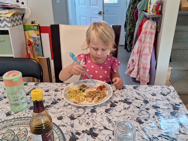 Audrey is back from visiting more friends. To celebrate Kristin's end, of course, we have Chinese takeout for supper.