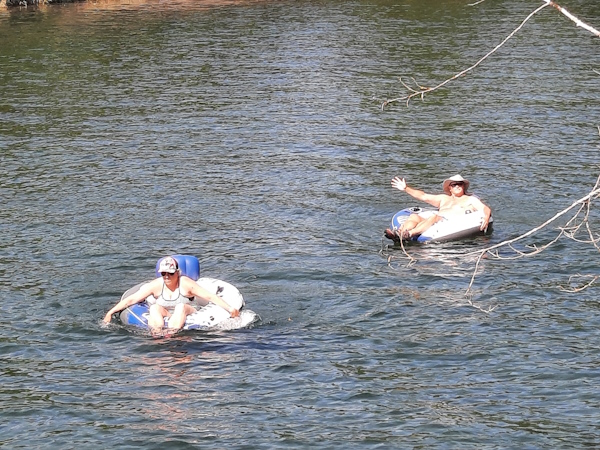 We are going down the short stretch of the river because it is Natasha's first time on the river in a tube.