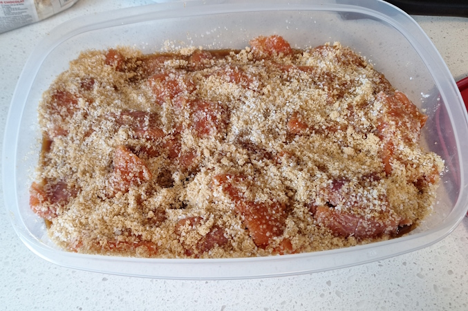 This is the salmon in the brine I made this morning. It is made of half brown sugar and kosher salt.