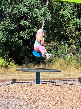 When she jumps on the trampoline, her hair ends up like this. It is so funny looking.