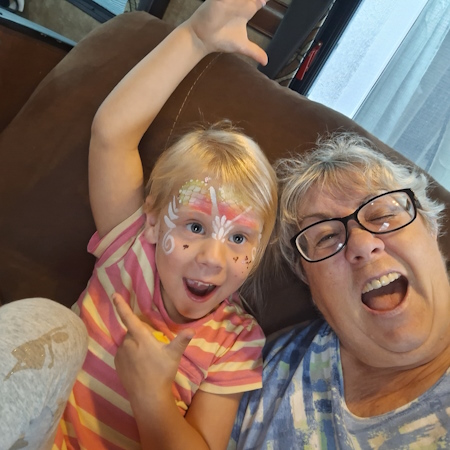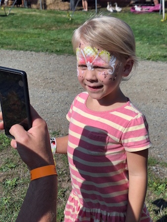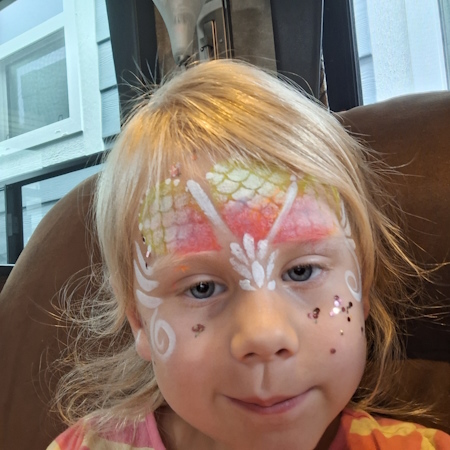 The lady doing the painting is very good with kids. Natasha chose a mermaid for her painting.