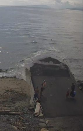 Jeremy and Natasha are at Point Holmes to dump the fish guts in the ocean.