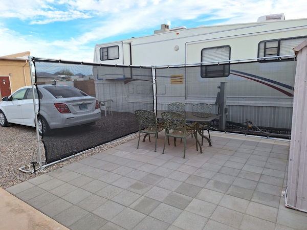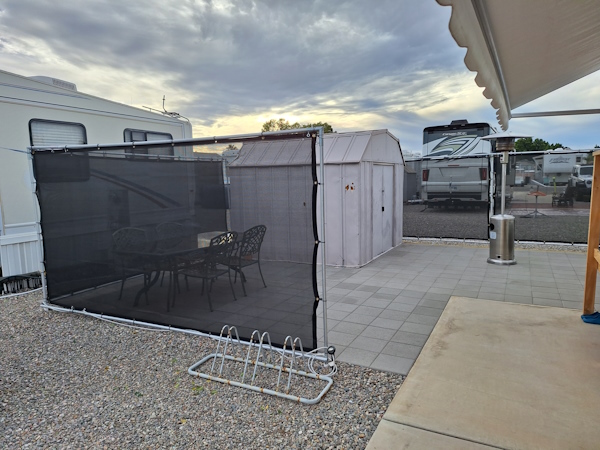 When the sun goes down, it cools right off. When I use the BBQ, I turn on our patio heater to keep warm.