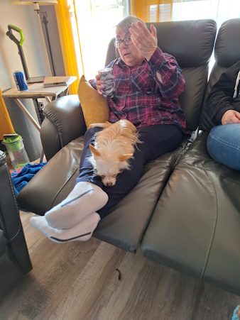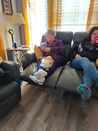 A few friends were invited to Terry and Darlene's place to watch the game.