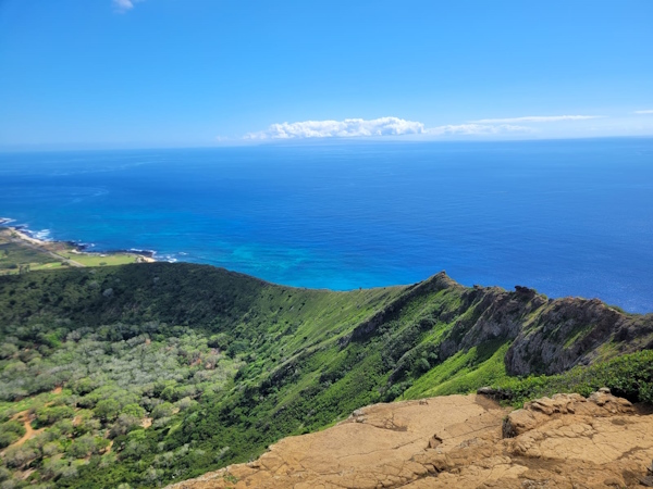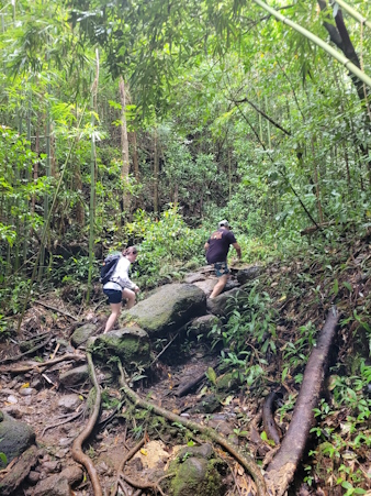 It is now all work. Jeremy and his coworker do some hiking around the island.