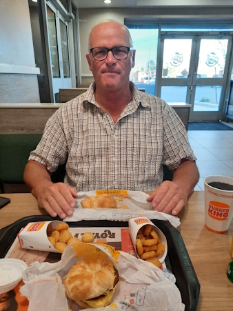 The first stop on our two hour journey is at Burger King because we have a discount coupon.