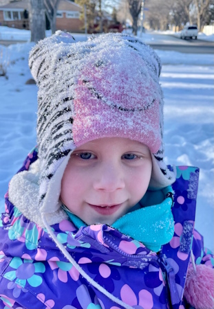 Natasha is having a great time in the snow while visiting her grandparents in Regina.