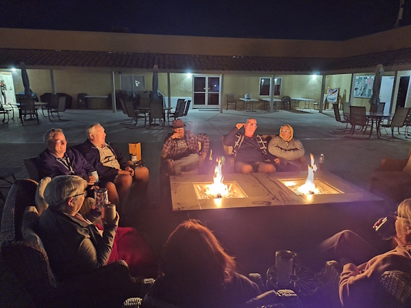 We joined friends on the patio after supper. We are all French.
