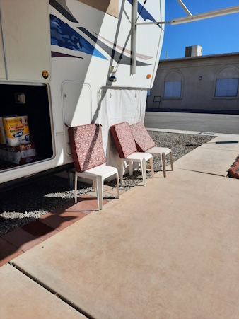 We found some cushions for two of our patio chairs.