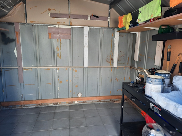 We emptied the shed so we could paint some of the interior walls.