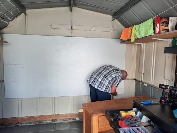 The plywood sheet will go to the back of the shed.