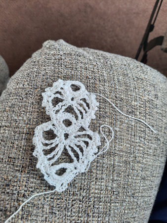 Michele is trying to crochet some bookmarks. The first ones are out of yarn, and the one on the right is smaller yarn.