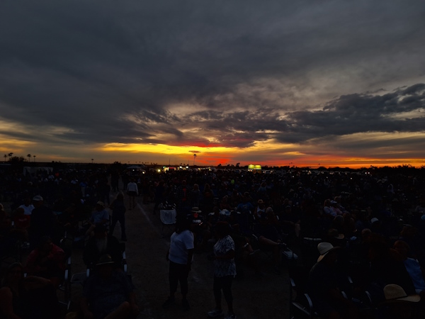 It is the evening with the most people attending. Howling at the Moon. They estimated the crowd at around 4,000. It is packed.