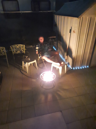 We were back home early, so I had a propane campfire.