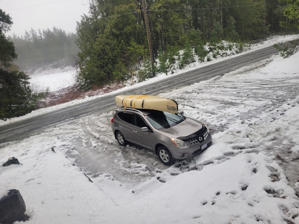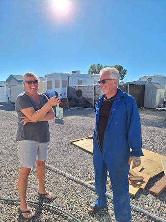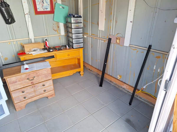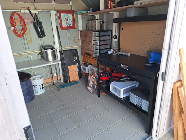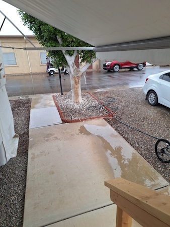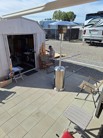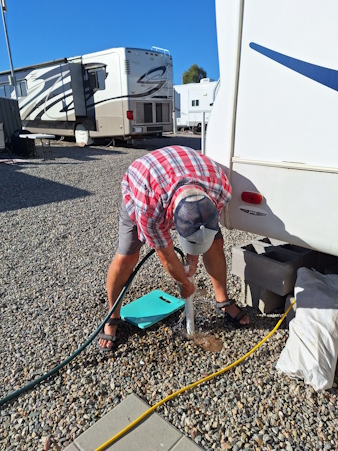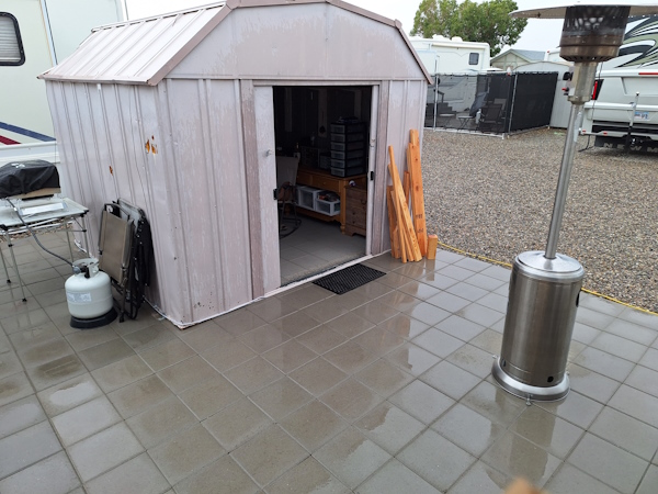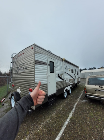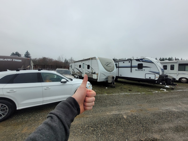 Jeremy is inspecting our trailer for water leaks while in storage.