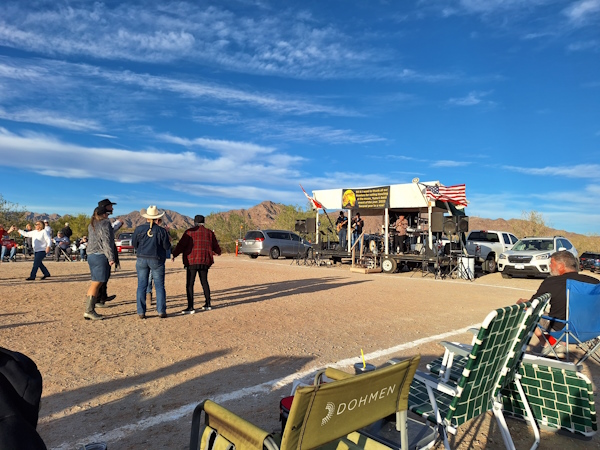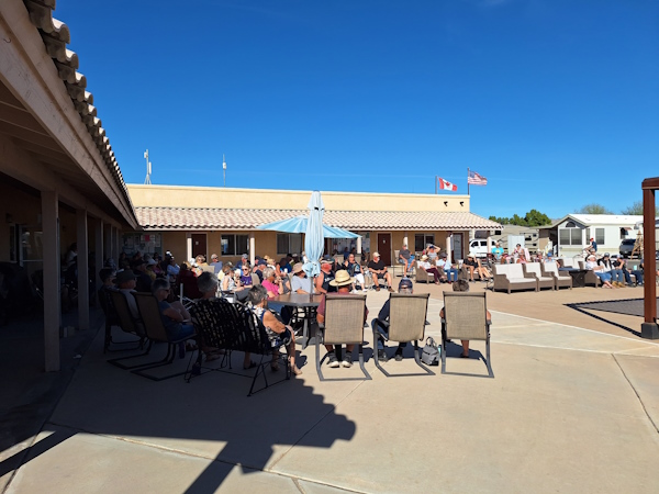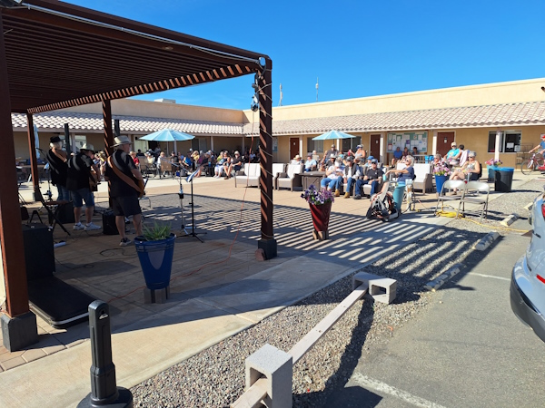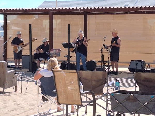 We keep on with music. The Krazy Kanucks band is playing on the patio