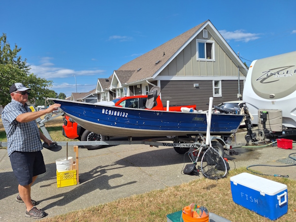 It is fun to go fishing, but now we have to rinse the boat and equipment with saltwater residues.