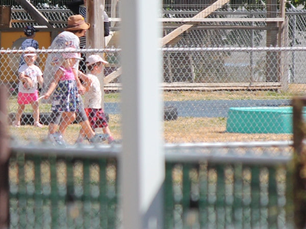 We had to stop at the red playground on our way back. We stopped for about half an hour.