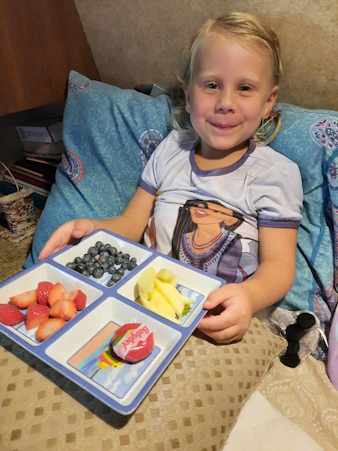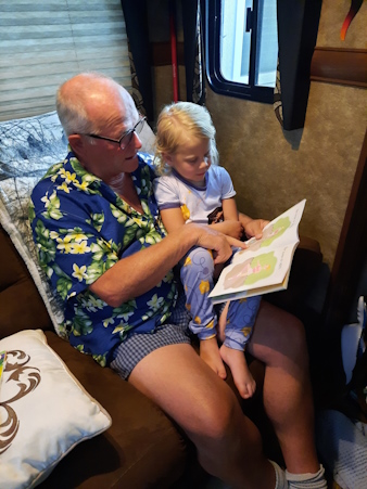 Natasha is with us in the trailer after supper. It is sleepover time.
