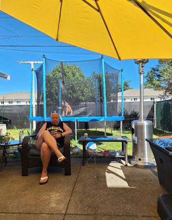 Jeremy's friend from work came with his two daughters to play with Natasha. They had fun in the pool and on the trampoline.