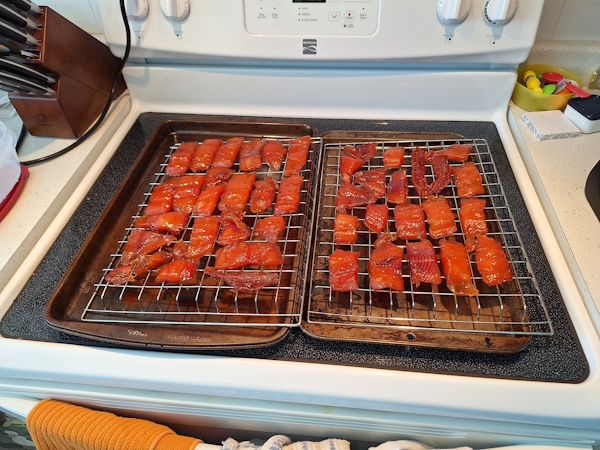to 5 hours. A light coat (lacker) will form on the whole salmon. This