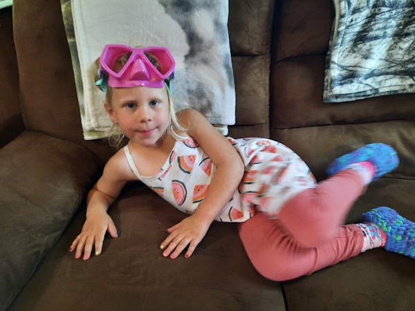 Grand-maman bought a mask for when we go to the beach. She will try it in the bath tonight.