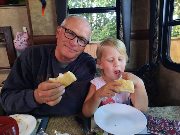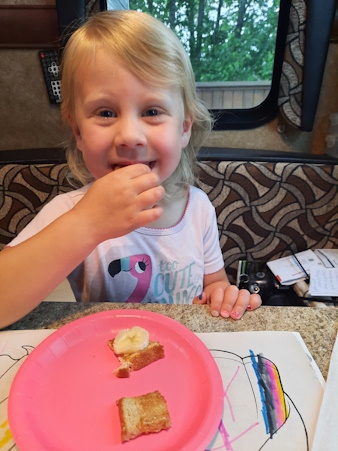 Natasha had her breakfast, then she had part of mine and some of grand-maman!