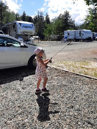 Natasha is pretty good for a 4 years old. She is casting her line like a pro.
