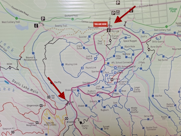Jeremy is riding on bike trails. I am walking on a gravel road.