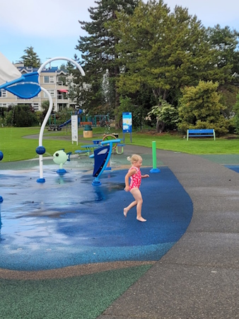 But first, she went to a birthday party at the splash park. Jeremy said it was very cold.
