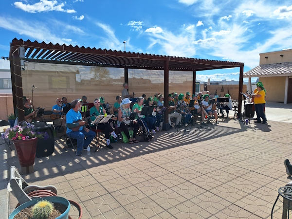 After the parade, we have a band on the patio, the Uka-Holics. We have more musicians than people listening to the band.