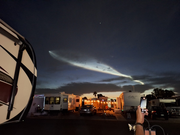 We were surprised to see a Space X rocket fly over us on its way to space.