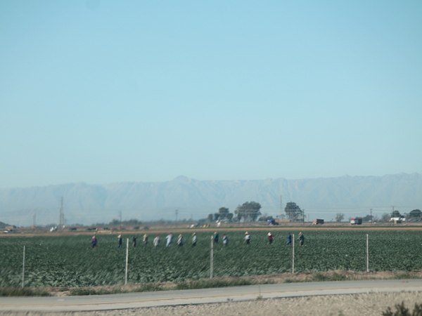 The outside temperature is 80° F. Yet the field workers are still dressed as winter.