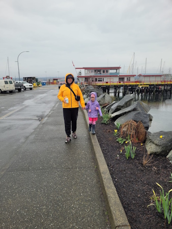 In Comox, an ice cream and a stroll in the rain for the Matte family.