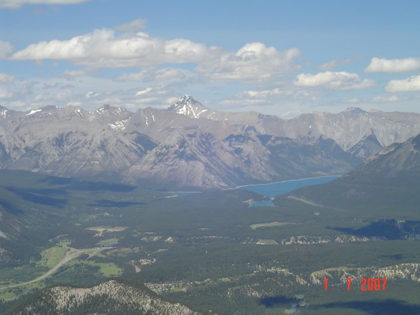 Another view of the Minnewanka lake and the Palliser range.  The tall mountain is mount Aylmer at 3,162 m.