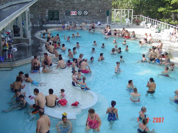 All four of us take the gondola to get back down the mountain.  The next stop is the thermal bath of Banff located 10 minutes from the gondola.