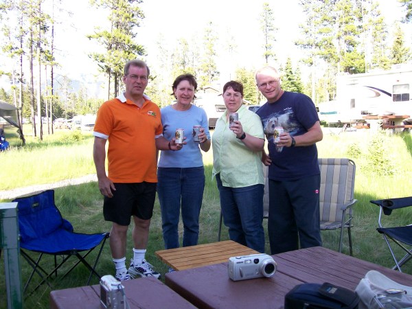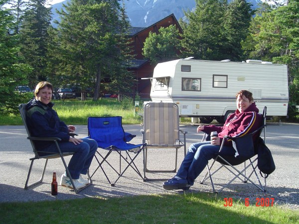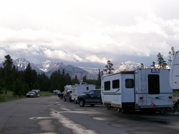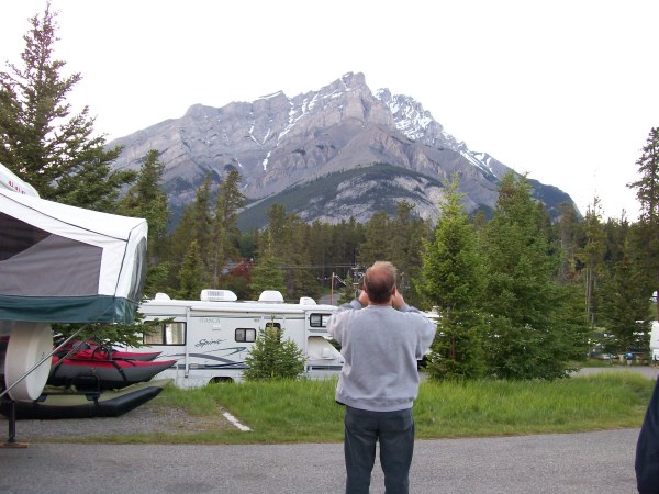 Three or four stops later we got to Banff.  Right away, we went to our campground to get our spot, rest and catch up with a beer or two.  It is so funny to watch Suzie and Rolland with their head spinning around trying to catch all the sights.