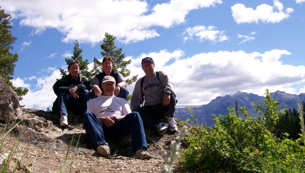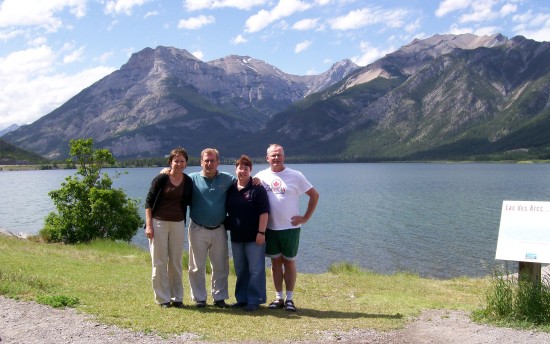 The 4 of us by Lac des Arcs or Bow Lake.  It is actually in French on maps.
