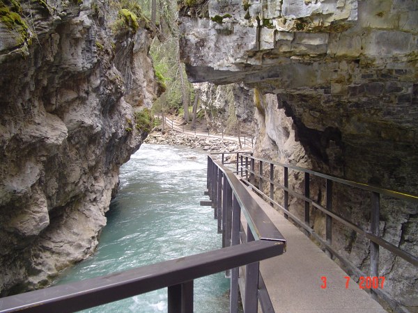 Most of the trail is on thesidewalk attached to the side of the canyon.