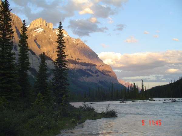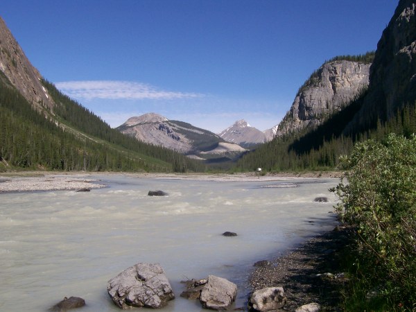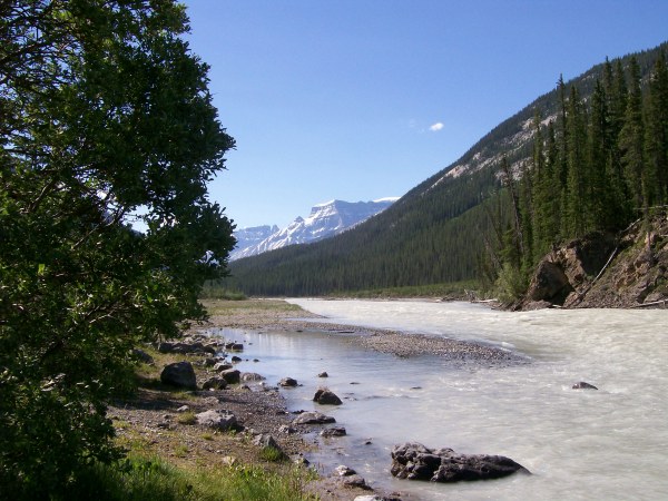 Mont Christie, 3,103 m. In the foreground, the Athabasca river